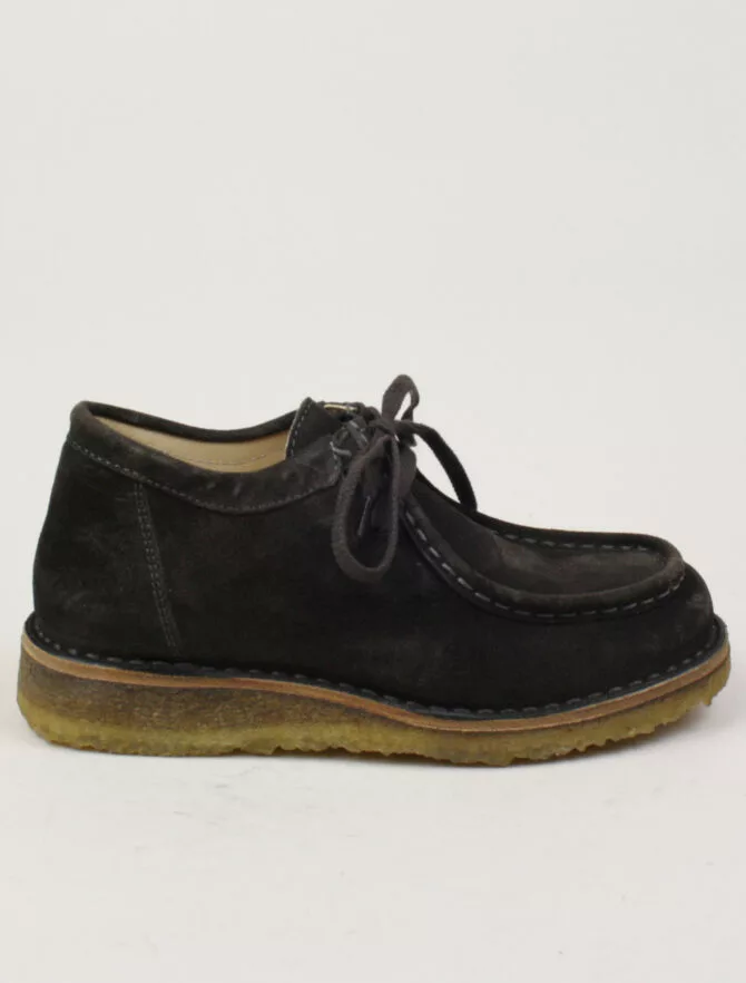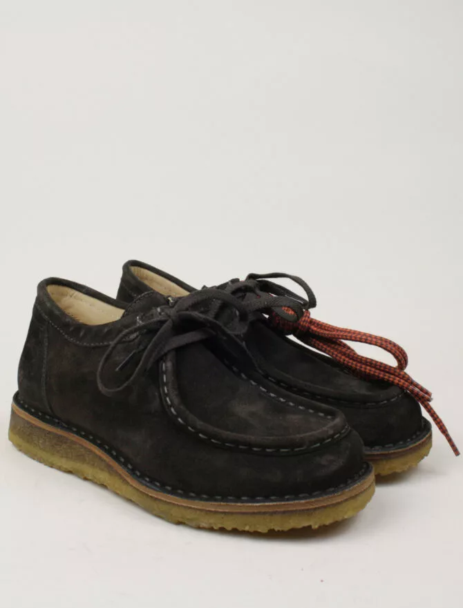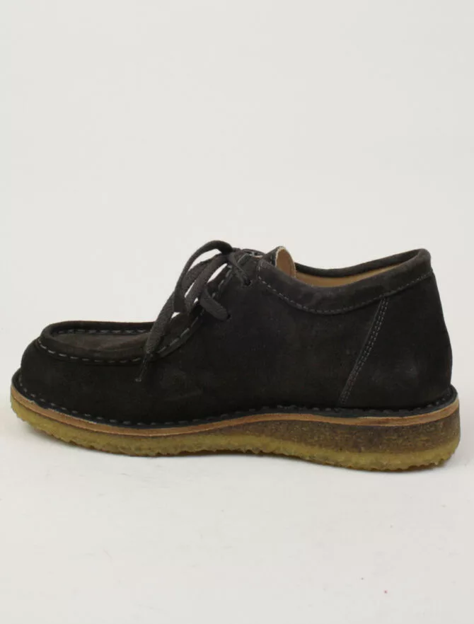 Scarpa in pelle scamosciata, lavorazione Ideal con intersuola in cuoio. Questo modello è composto da materiali genuini, questi materiali fanno si che la scarpa si adatti al piede, garantendo il massimo della traspirabilità, mantenendolo asciutto.