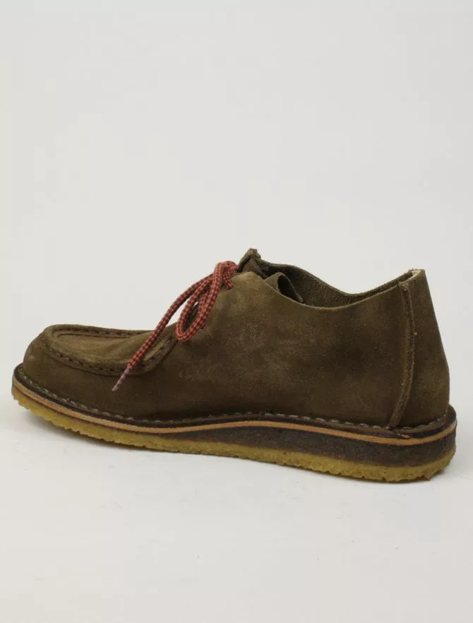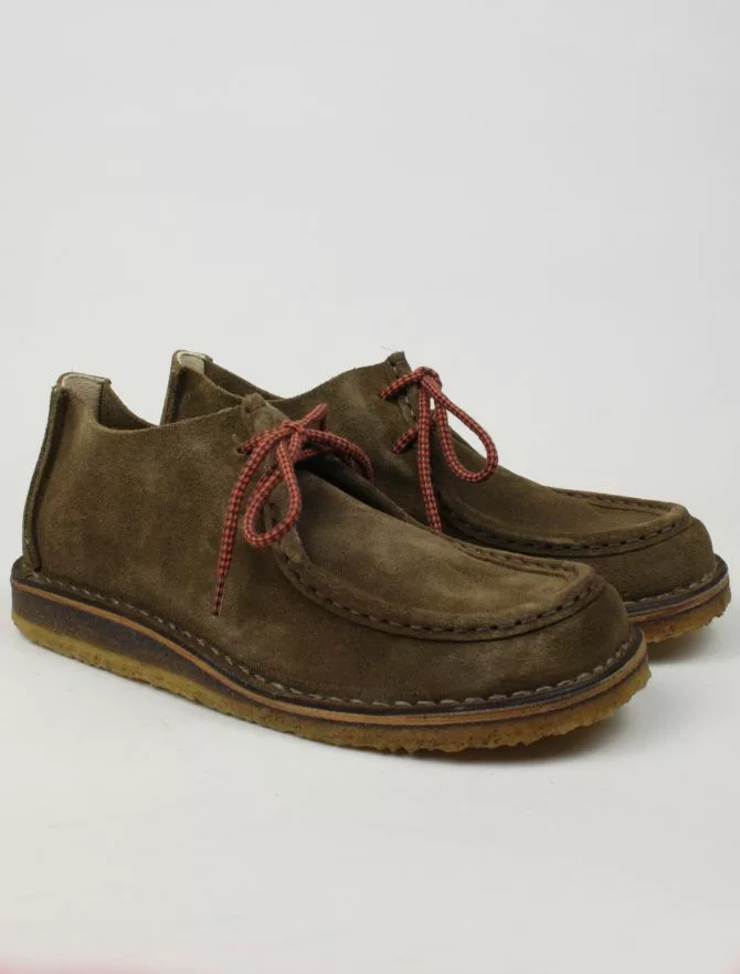 Scarpa in pelle scamosciata, lavorazione Ideal con intersuola in cuoio. Questo modello è composto da materiali genuini, questi materiali fanno si che la scarpa si adatti al piede, garantendo il massimo della traspirabilità, mantenendolo asciutto.