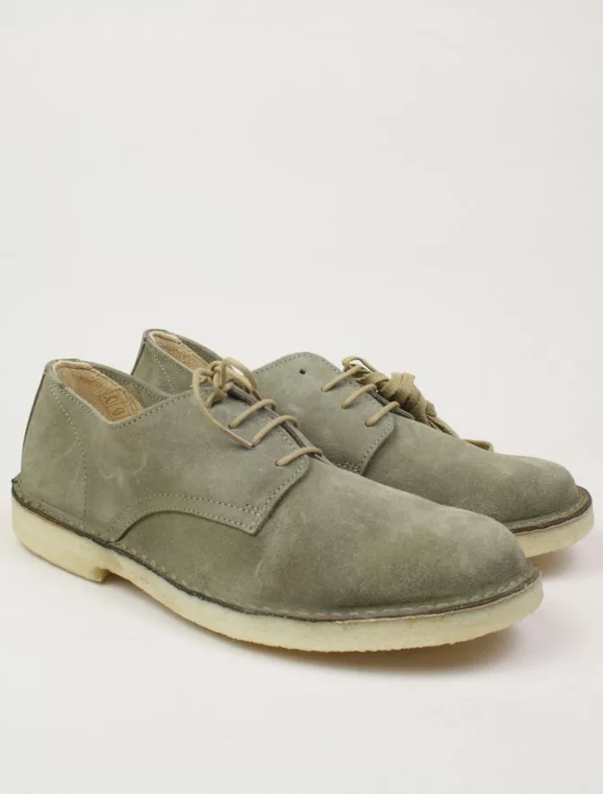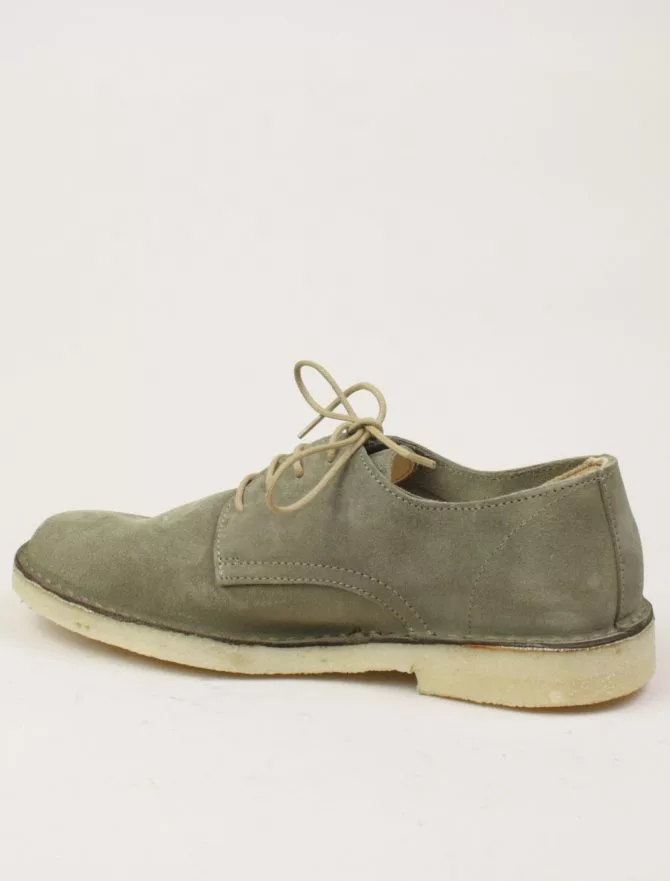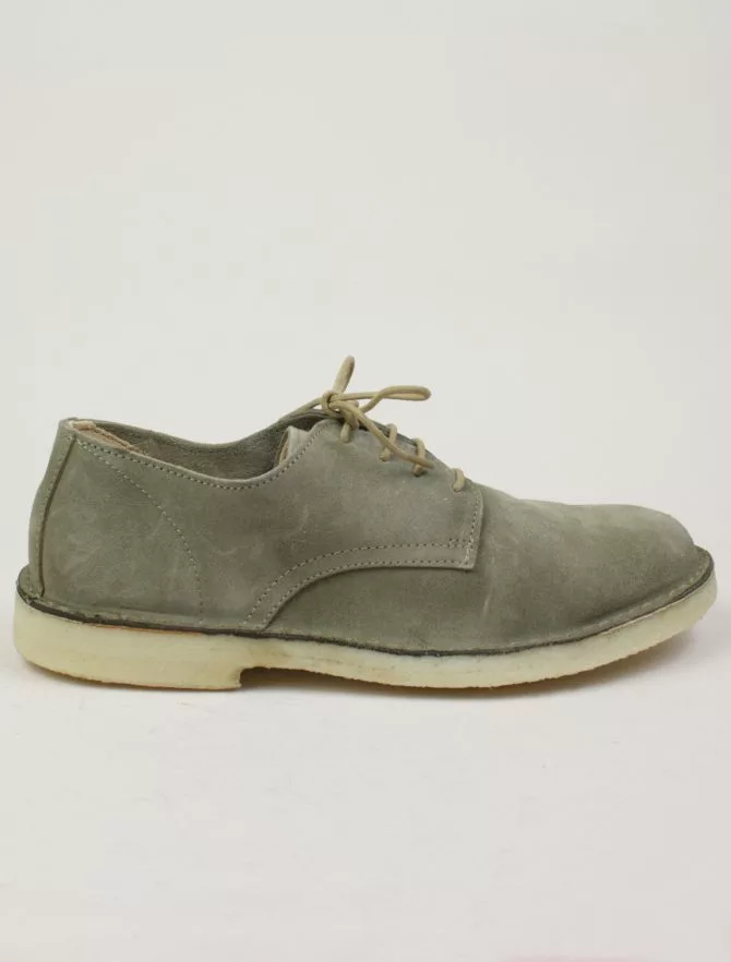 Allacciato in pelle scamosciata, scarpa sfoderata perfetta per la mezza stagione e per i climi più caldi, Soletto interno in cuoio. Suola in para naturale.