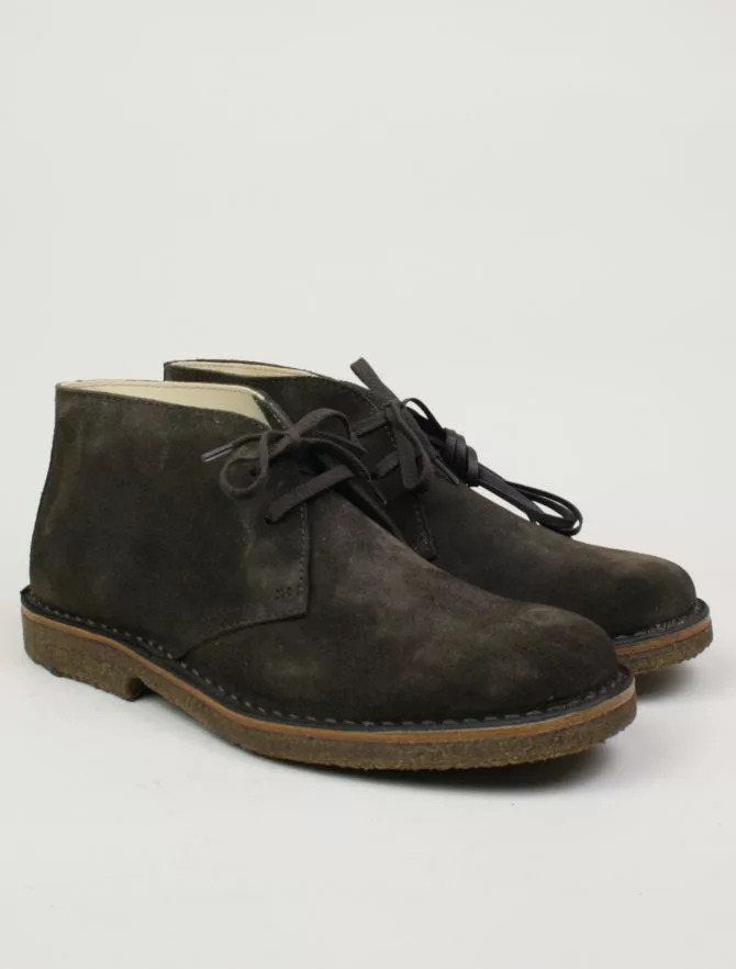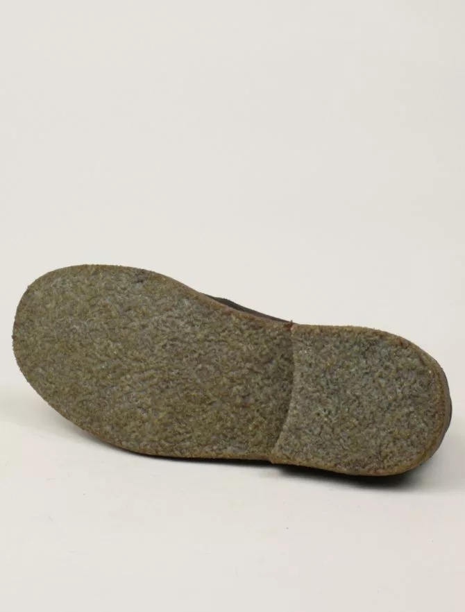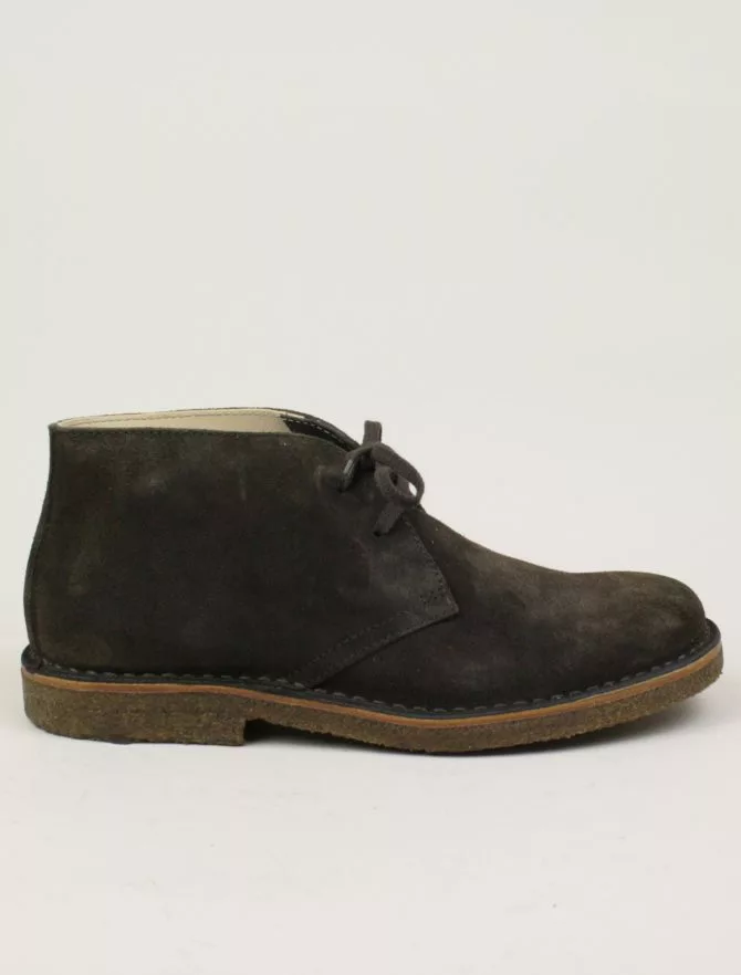 Polacchino in pelle scamosciata, lavorazione Ideal con intersuola in cuoio, fodera in vitello. Questo modello è composto da materiali genuini, questi materiali fanno si che la scarpa si adatti al piede, garantendo il massimo della traspirabilità, mantenendolo asciutto.