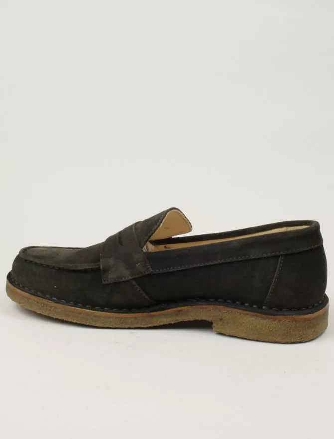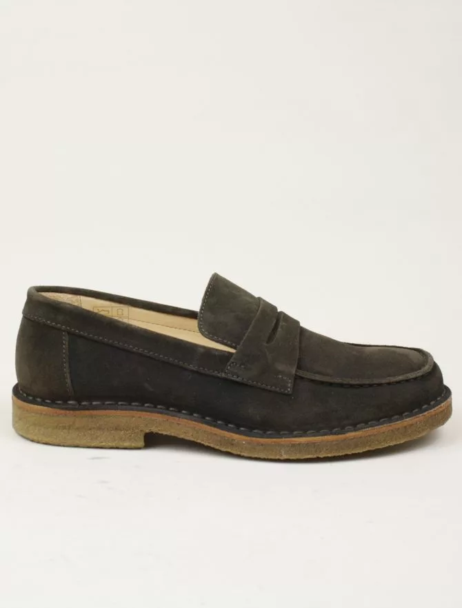 Mocassino in pelle scamosciata, lavorazione Ideal con intersuola in cuoio, fodera in vitello. Questo modello è composto da materiali genuini, questi materiali fanno si che la scarpa si adatti al piede, garantendo il massimo della traspirabilità, mantenendolo asciutto.