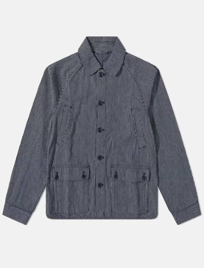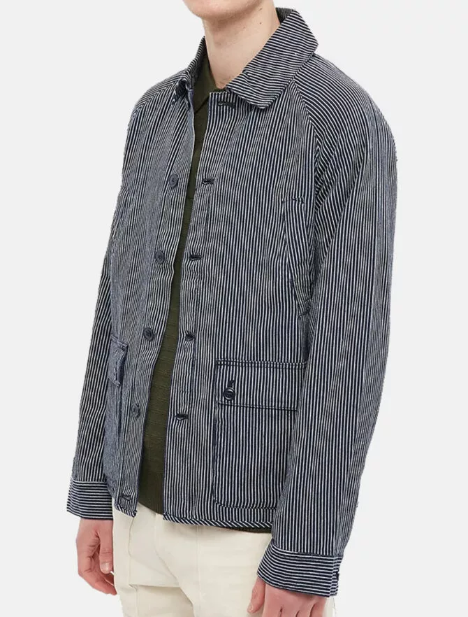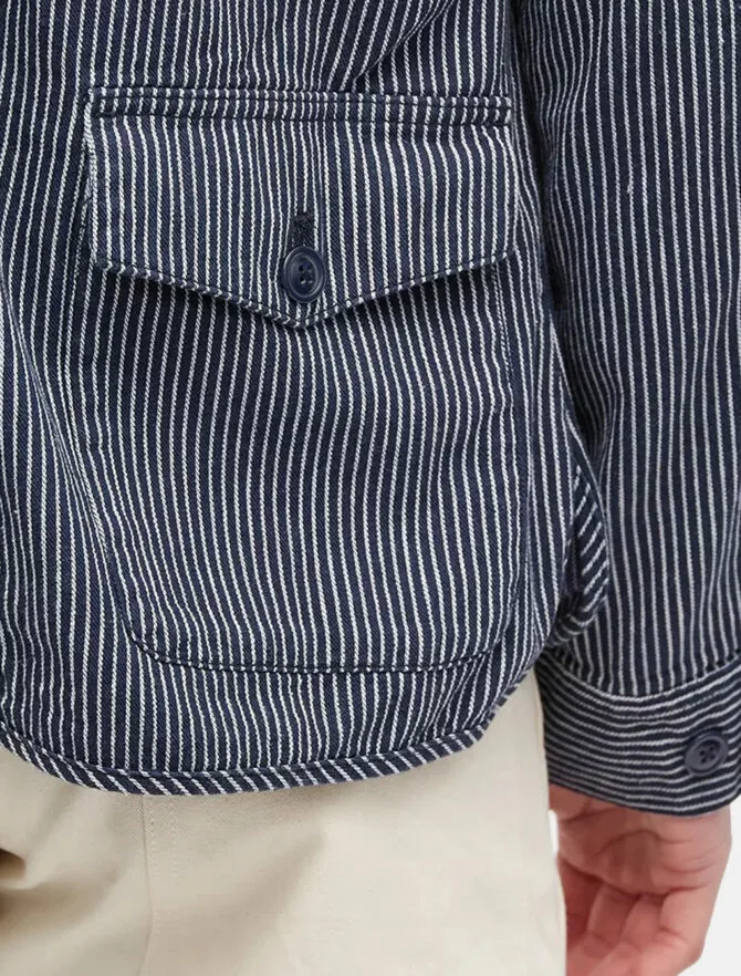 Giacca Barbour con manica raglan dal look workwear rilassato. Realizzata nel caratteristico cotone del brand, è dotata di numerose tasche pratiche, di cui una sul retro della giacca, e presenta un motivo a righe bianche e blu navy una texture workwear classica.
