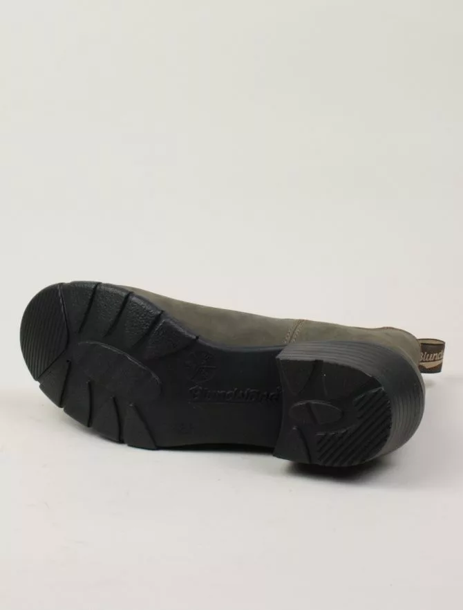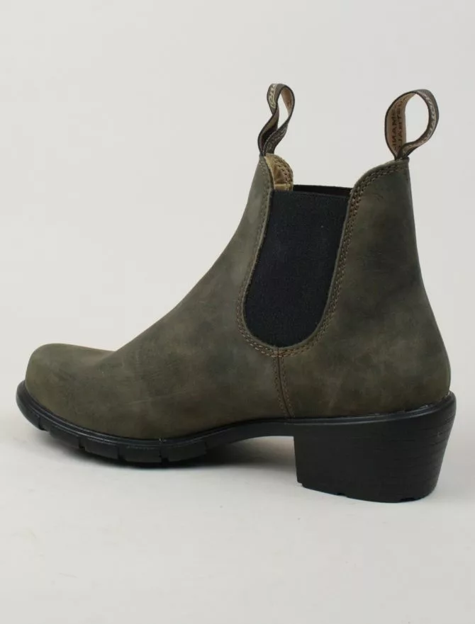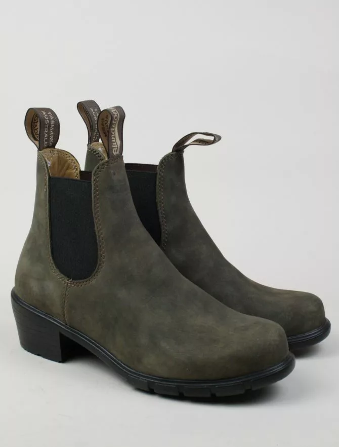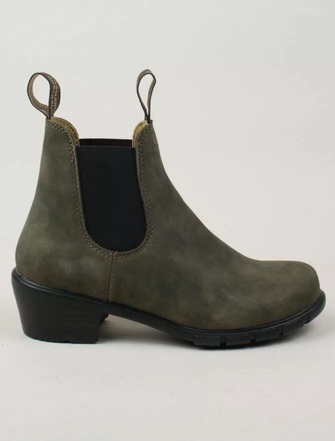 Stivaletti da donna con tacco Blundstone #1677 realizzati in pelle marrone, con tomaia classica liscia ed elastici laterali tono su tono.