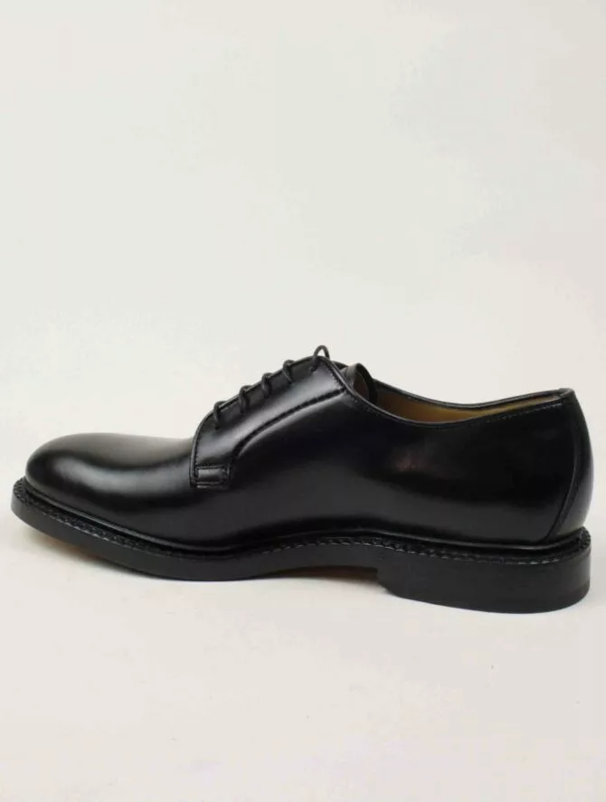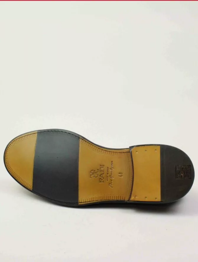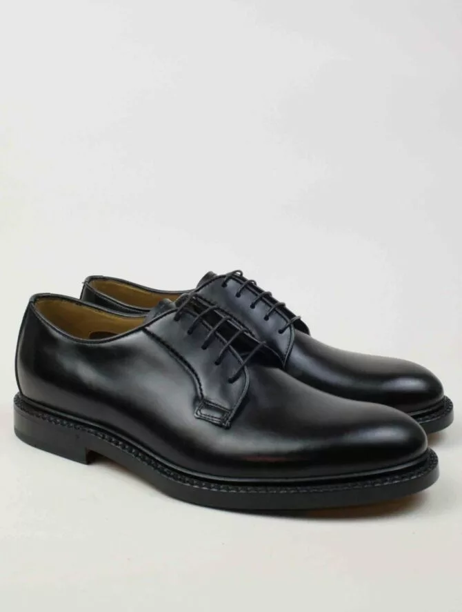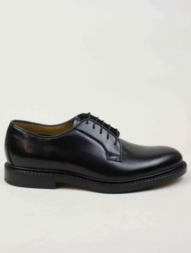 Scarpa modello Derby in vitello. Realizzato con lavorazione artigianale Flex Goodyear, una costruzione brevettata dal calzaturificio Fabi che dona massima flessibilità e comfort. Suola in cuoio.