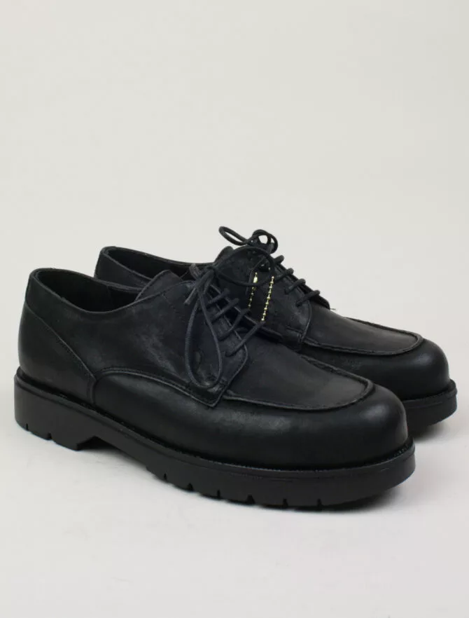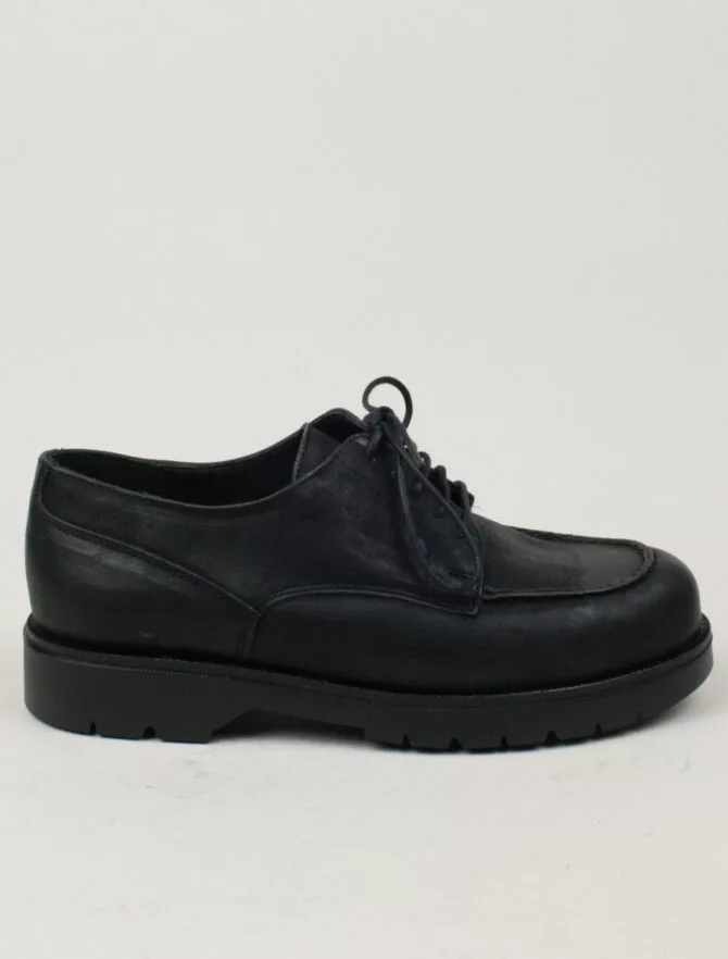 Scarpe Kleman eco-friendly realizzate in pelle martellata conciata al vegetale in una conceria italiana. Questa tecnica sostenibile dona un aspetto autentico alla pelle che negli anni viene impreziosita da una patina unica.