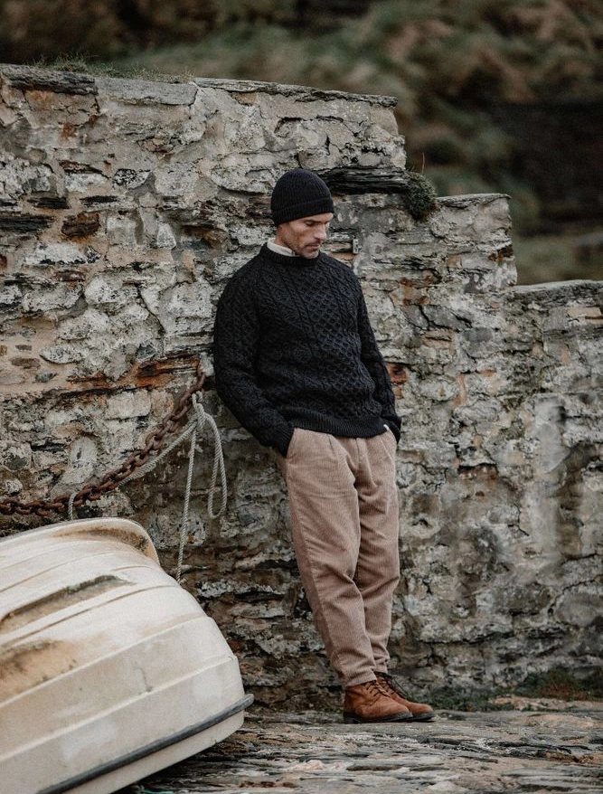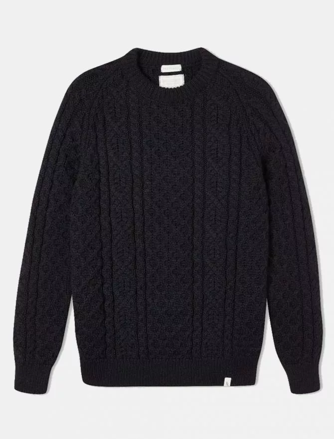 Originariamente creato per i pescatori che escono in condizioni di vento umido in mare, un vero fishrman rib da pescatore ha bisogno di quasi il doppio del filo di un maglione a maglia rasata della stessa taglia, rendendolo più caldo quando il tempo si avvicina. Questo Hudson Aran è un 5GG privo di sostanze chimiche Maglia in lana britannica, con proprietà idrorepellenti naturali e antibatteriche. Proveniente da una fattoria accreditata British Wool nello Yorkshire, a soli 60 miglia dalla fabbrica. Questo capo viene realizzato in lotti di soli 200 pezzi, prendi questa speciale maglia Aran finché puoi.