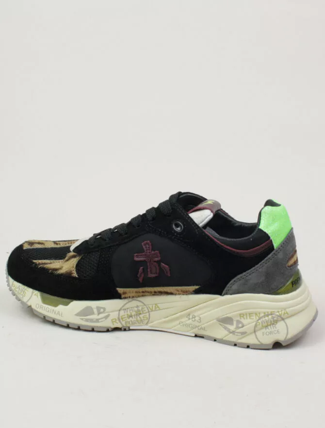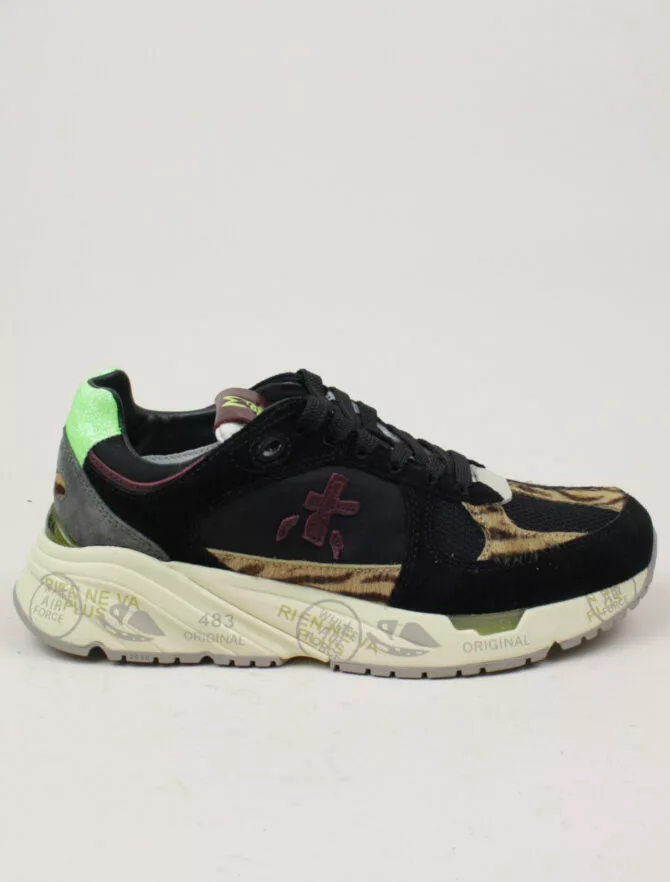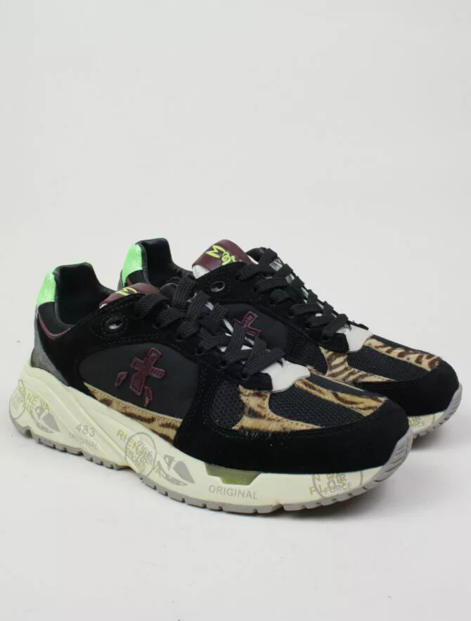 Sneakers Premiata “Mase-D” risentono del mood nineties, combinano una silhouette vintage con materiali pregiati e dettagli vivaci. E’ fedele al design Premiata e ne conserva tutti gli elementi chiave: il logo che decora i laterali, la scritta MASE che si evince sull’etichetta, dettagli animalier che ne risaltano la visibilità.